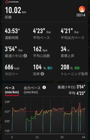 普通に風邪だったのですが、1週間走ってなかったので、距離は10kmと決めて走りました。
